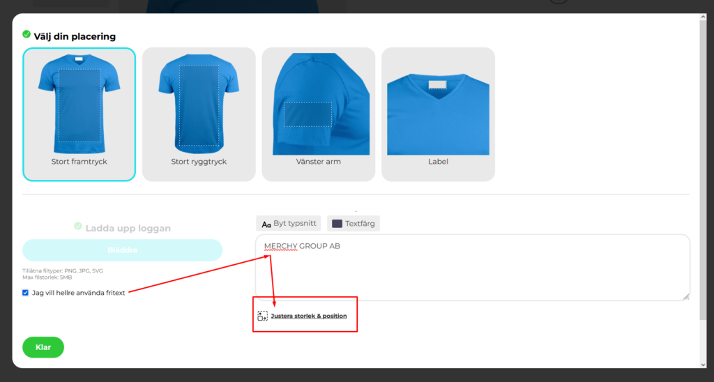 Ladda upp önskad bild eller använd fritext.