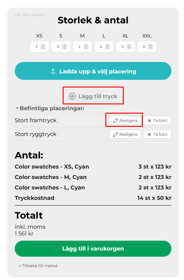 Klicka på ”Lägg till tryck”. Eller redigera en befintlig för att skapa nya.
